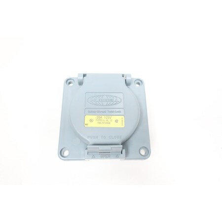 ' Watertight Locking Receptacle, Shrouded / Non-Shrouded Shrouded, Wiring Style Standard, Mounting Type Flush Mount, Grade Industrial, Material Nylon, 20 Amps, Voltage 125VAC, Number of Poles 2, Number of Wires 3, Color Gray, L5-20R NEMA Configuration, NEMA Rating 4, 4X, 12, IP Rating 66, Phase 1, HP 1.0, Standards UL 94V-0/CSA, Special Features With Locking Cover '