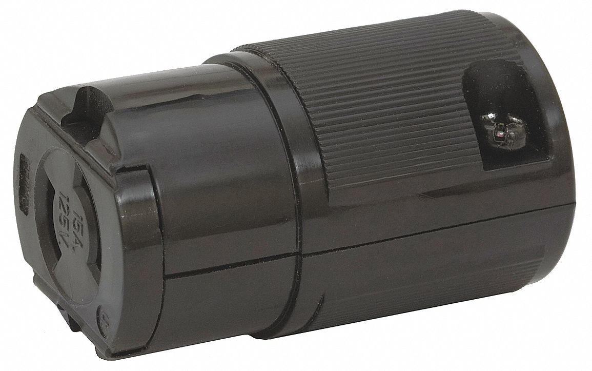 <br /><br /> Item: Midget Locking Connector<br /> Wiring Style: Hinged<br /> Amps: 30<br /> NEMA Configuration: L5-30R<br /> Voltage: 120VAC<br /> Number of Poles: 2<br /> Number of Wires: 3<br /> Color: Black<br /> Body Material: Nylon<br /> Cord Size: 0.590" to 0.930"