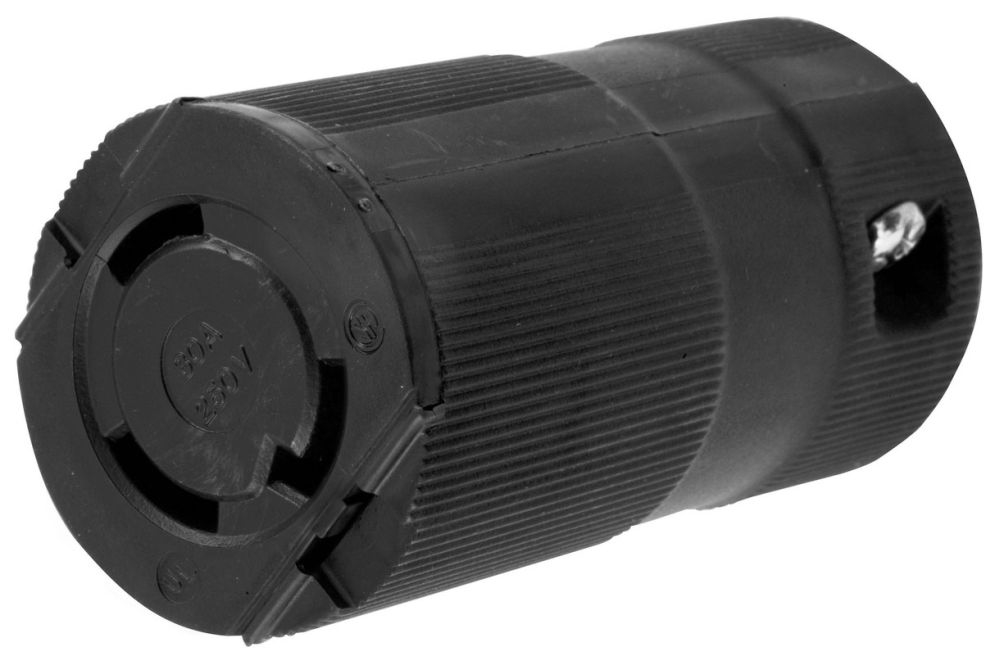 <br /><br /> Item: Midget Locking Connector<br /> Wiring Style: Hinged<br /> Amps: 30<br /> NEMA Configuration: L6-30R<br /> Voltage: 240VAC<br /> Number of Poles: 2<br /> Number of Wires: 3<br /> Color: Black<br />Body Material: Nylon<br /> Cord Size: 0.590" to 0.930"