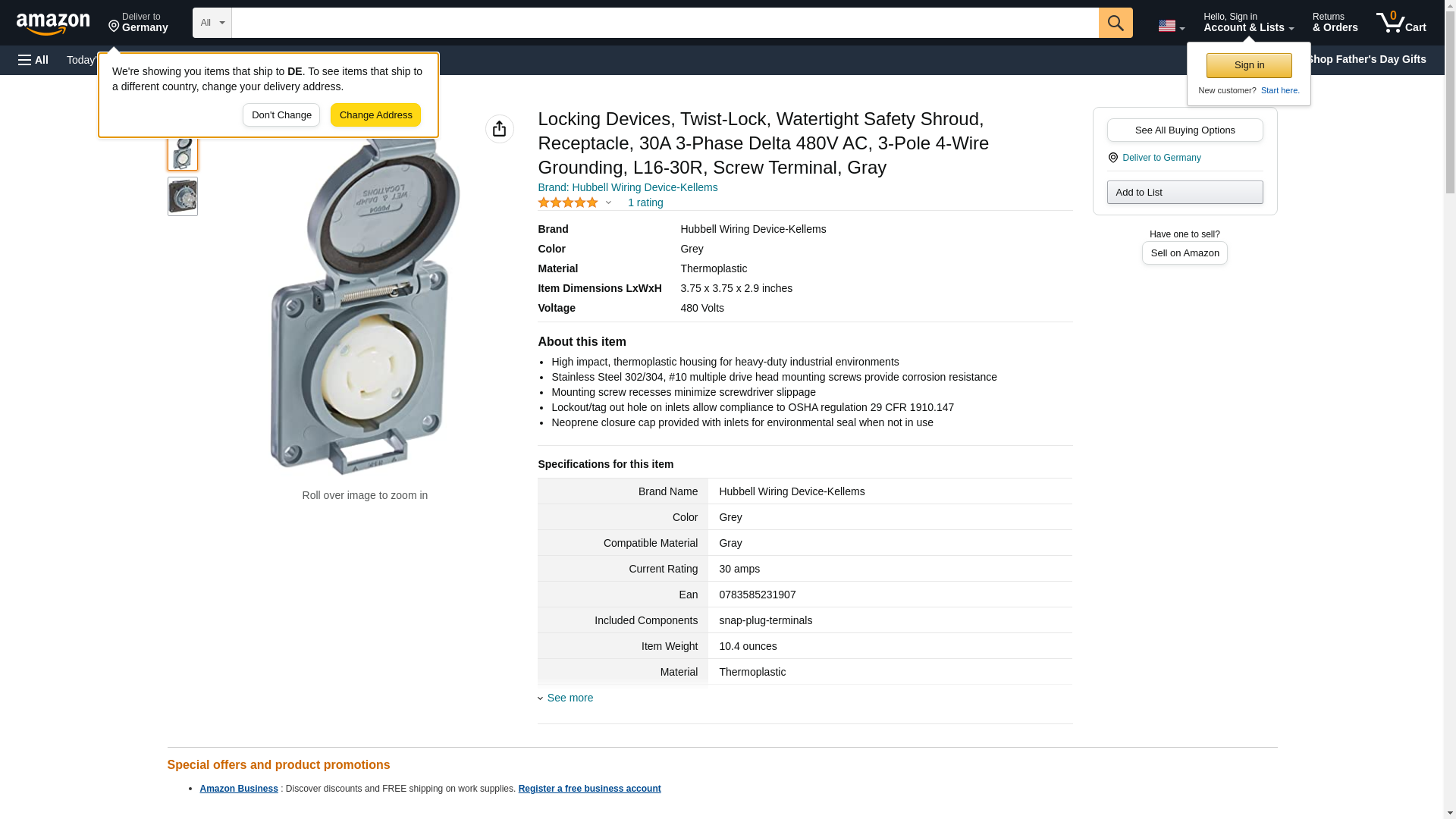 | Feature | Price For: Each Wiring Style: Standard NEMA Rating: 4, 4X, 12 Mounting Type: Flush Mount Grade: Industrial Color: Gray Shrouded / Non-Shrouded: Shrouded Number of Wires: 4 Standards: UL 94V-0/CSA Item: Watertight Locking Receptacle NEMA Configuration: L16-30R Number of Poles: 3 Amps: 30 Voltage: 480VAC HP: 10.0 Material: Nylon IP Rating: 66 |