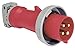 Male Plug IEC 60309 Pin and Sleeve. Rated for <b>480 Volts</b>, 30 Amps, 3-Pole, 4-Wire, IP67 Watertight, Three Phase. CEEtyp clockface ground pin in 5 Hour Position Mates with Female in 7 Hour Position. Housing Color - Red. UL and CSA Approvals.