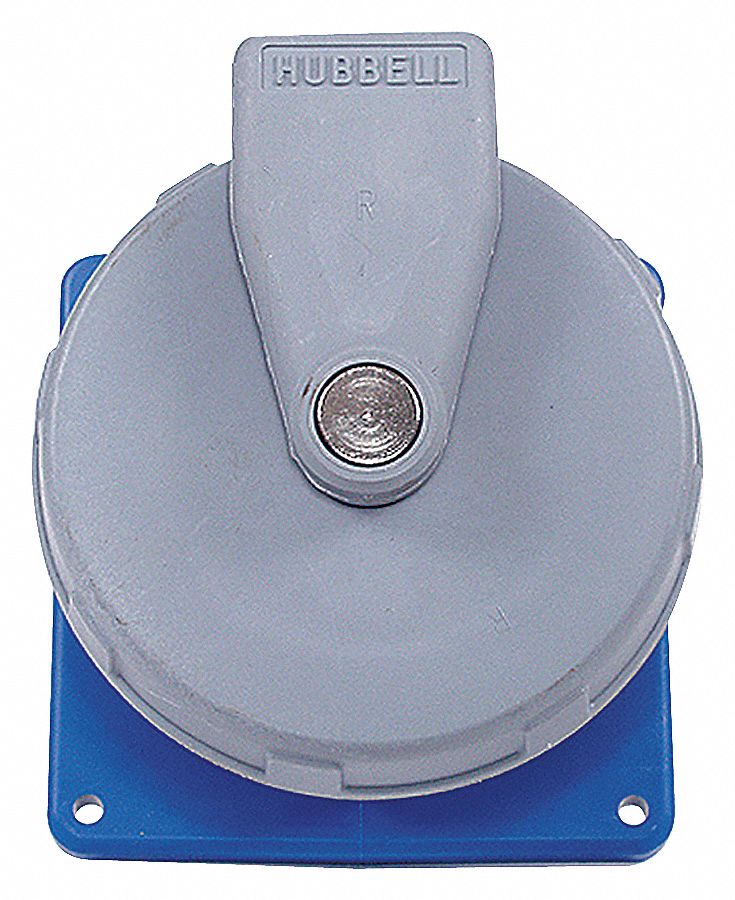 IEC Nonmetallic Watertight Pin and Sleeve DevicesDesigned and manufactured to meet international standards IEC 60309-1 and 60309-2. Feature a nonconductive nylon housing and OSHA-compliant lockout hole in the plug shroud to provide additional safety. The all-nonmetallic housing withstands heavy-duty industrial environments. Devices are color-coded for each specific voltage. Pin configurations are singly rated to prevent accidental mismating.<br /><br /> Item - Plugs and Receptacles: Watertight Pin and Sleeve Receptacle<br /> Body Material - Pin and Sleeve: Zytel 101 Nylon<br /> Amps - Plugs and Receptacles: 60<br /> Voltage - Plugs and Receptacles: 250VAC<br /> Color - Plugs and Receptacles: Blue<br /> Number of Poles: 3<br /> Number of Wires: 4<br /> Grounding Style: IEC<br /> Phase - Electrical: 3<br /> Features: Abuse Resistant<br /> HP: 5<br /> Switch Rated: No<br /> Standards: UL Listed E146032, CSA Certified LR285C, C22.2 No. 182.1, IEC 60309-1 and 60309-2<br /> Item: Watertight Pin and Sleeve Receptacle