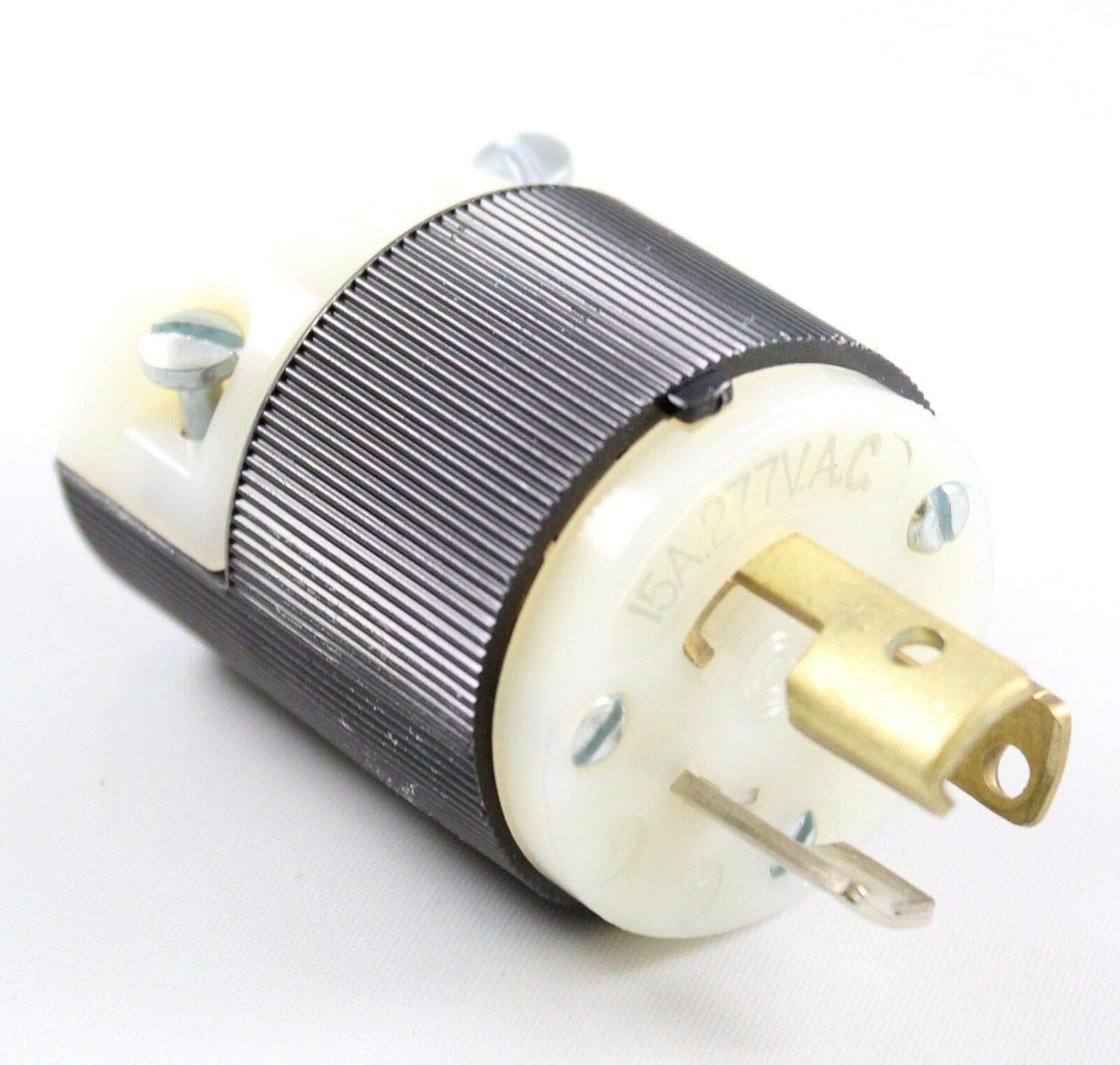 | Feature | <b>Price For:</b> Each <b>Material</b>: Nylon <b>Antimicrobial</b>: No <b>Shrouded / Non-Shrouded</b>: Non-Shrouded <b>Number of Poles</b>: 2 <b>IP Rating</b>: 20 <b>Wiring Style</b>: Hinged <b>Item</b>: Locking Plug <b>Color</b>: Black <b>Grade</b>: Industrial <b>Standards</b>: UL/CSA <b>Number of Wires</b>: 3 <b>Phase</b>: 1 <b>NEMA Configuration</b>: L7-15P <b>Cord Size</b>: 0.220" to 0.660" <b>HP</b>: 2.0 <b>Amps</b>: 15 <b>Voltage</b>: 277VAC |