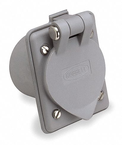 Hubbell Wiring Systems HBL61CM65 Nylon Compact Weatherproof Panel Mount Outlet with Straight Blade, 20A/15A, 125V, 2-Pole, 3 Wire Grounding, Gray