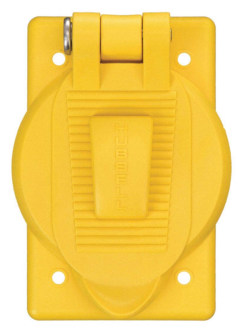 - <b>Price For:</b> Each <b>Item</b>: Weatherproof Cover <b>Lid Style</b>: Self Closing <b>Mounting Box</b>: FS or FD Weatherproof Boxes <b>For Use With</b>: Single 15 and 20A Straight Blade Receptacles and 15A Twist-Lock(R) Receptacles <b>Mounting Orientation</b>: Vertical <b>Number of Gangs</b>: 1 <b>Color</b>: yellow <b>Standards</b>: CSA <b>Cover Material</b>: Thermoplastic <b>Width</b>: 2-55/64" <b>Includes</b>: Mounting Screws and Gasket <b>Height</b>: 4-9/16"