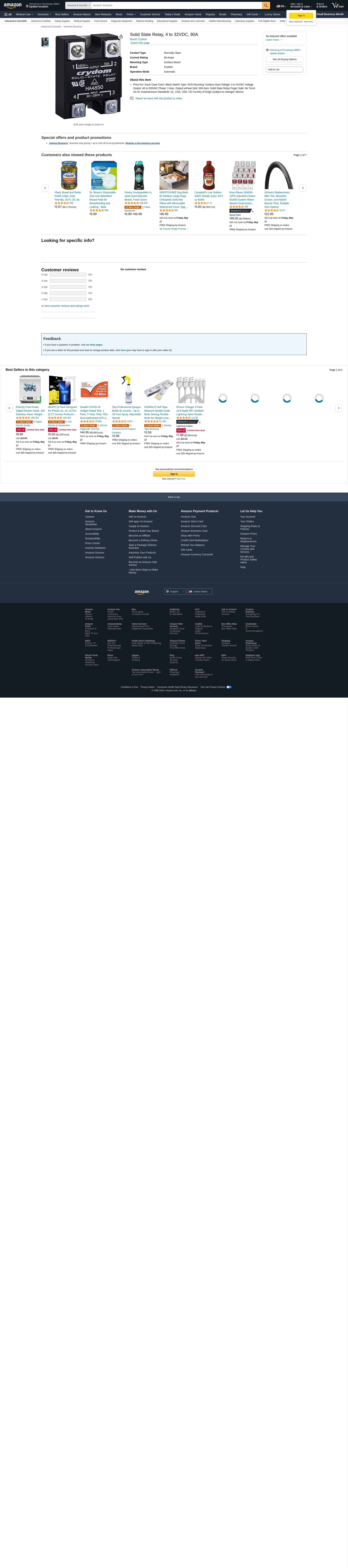 - Price For: Each Case Color: Black Switch Type: SCR Mounting: Surface Input Voltage: 4 to 32VDC Voltage Output: 48 to 530VAC Phase: 1 Max. Output w/Heat Sink: 90A Item: Solid State Relay Finger Safe: No Turns On At: Instantaneous Standards: UL, CSA, VDE, CE Country of Origin (subject to change): Mexico