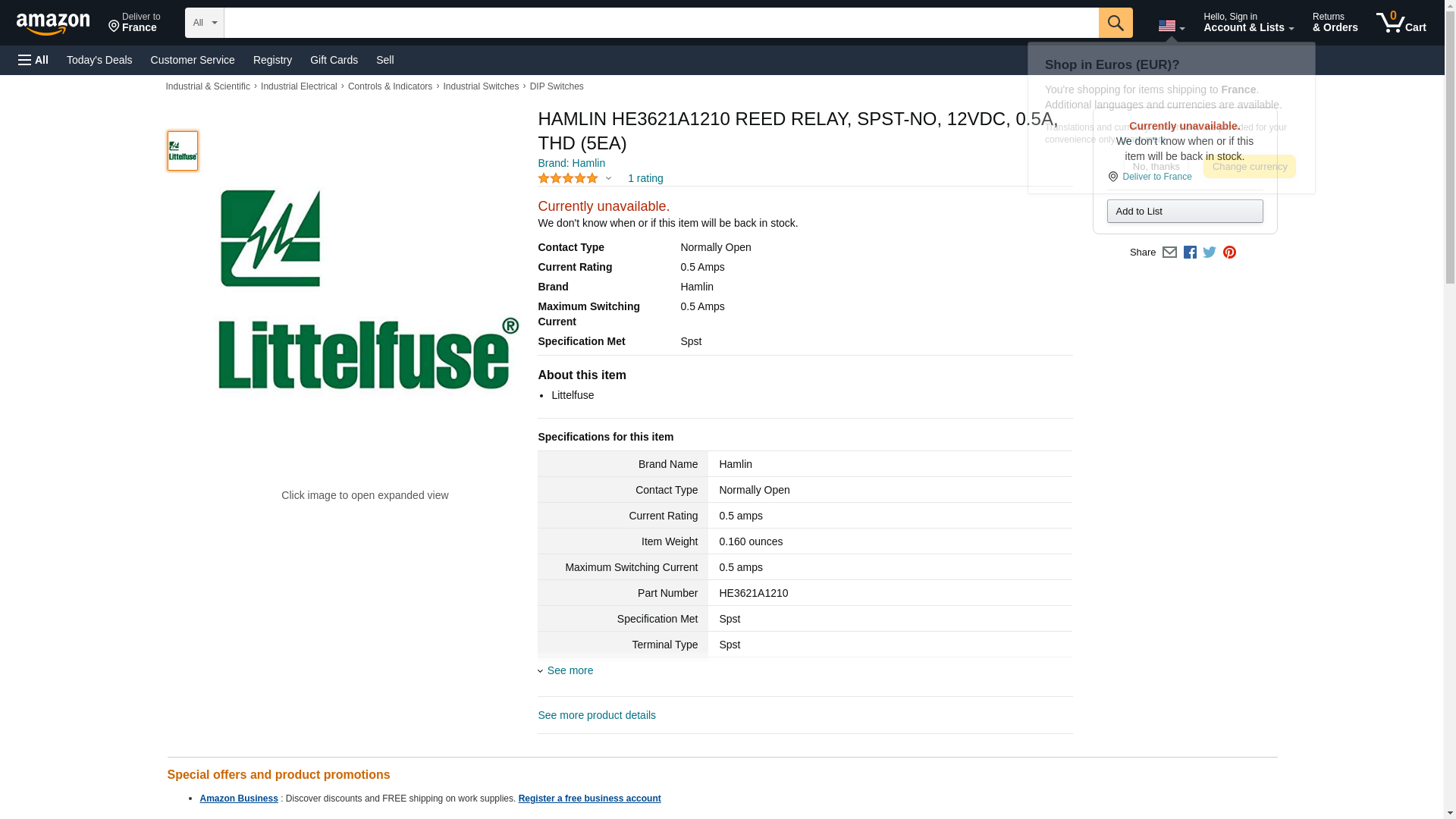 Littelfuse Relay, Reed, Spst-No, 200V, 0.5A, Tht - HE3621A1210