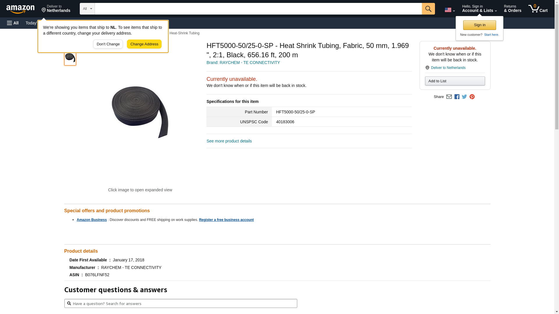 Raychem (TE Connectivity) Part Number HFT5000-50/25-0-SP