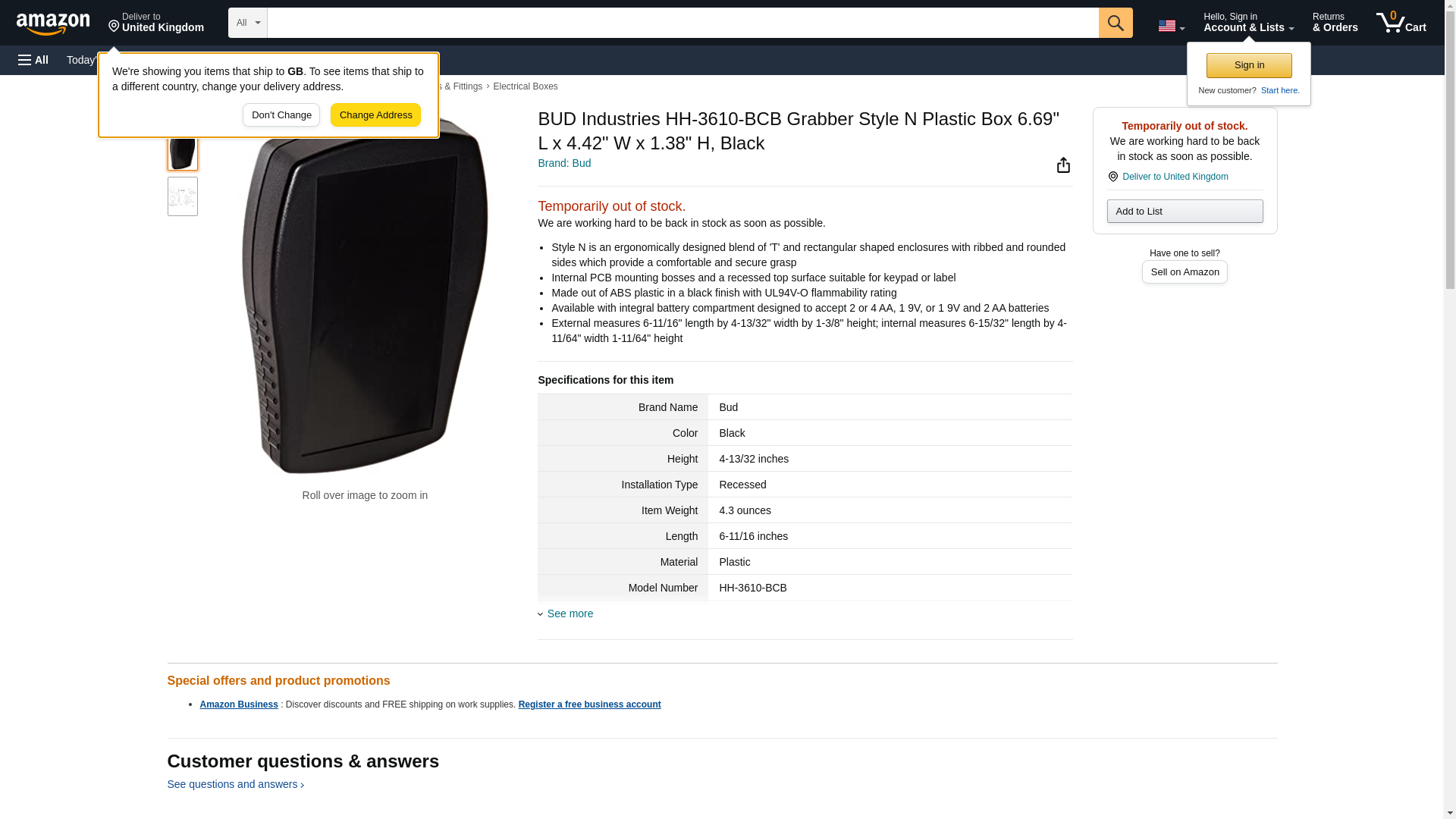 BUD Industries HH-3610-BCB Grabber Style N Plastic Box 6.69" L x 4.42" W x 1.38" H, Black