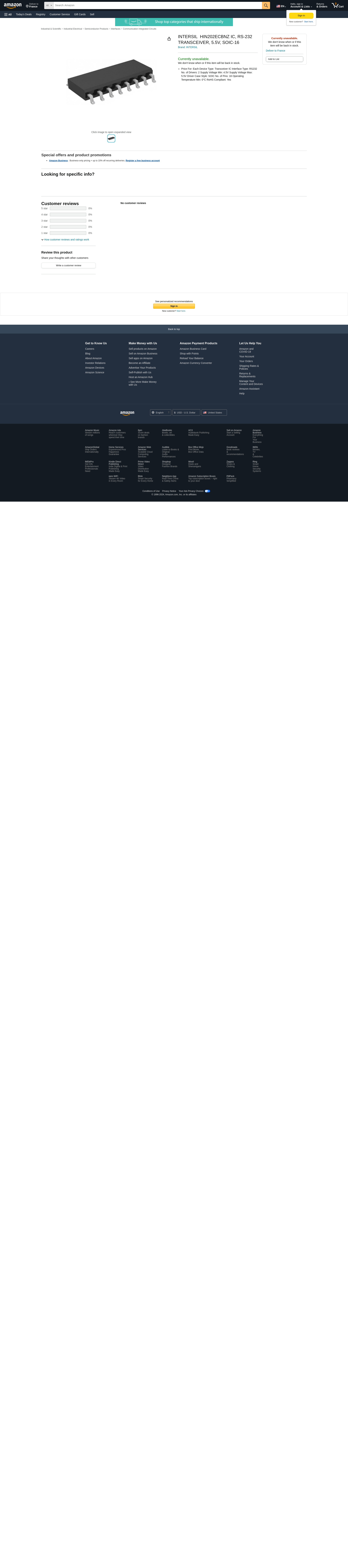 HIN202ECBNZ Integrated Circuit - CASE: Standard MAKE: INTERSIL