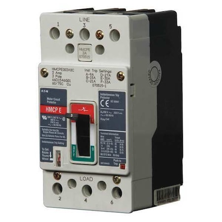 Magnetic, Molded Case; E Frame; 600 Star/347 Vac, 250 Vdc; 100 Ampere; 3 Pole; Trip Setting 300 To 1100 Ampere; Starter Size Nema 3; Motor Fla 23 To 87 Ampere; Terminal Non Aluminum Line Terminal, Load Terminal; 14 To 1/0 Awg Copper Wire Wire; Approval Ul, Ce; Hmcpe Model; Applicable Standard Iec 157-1