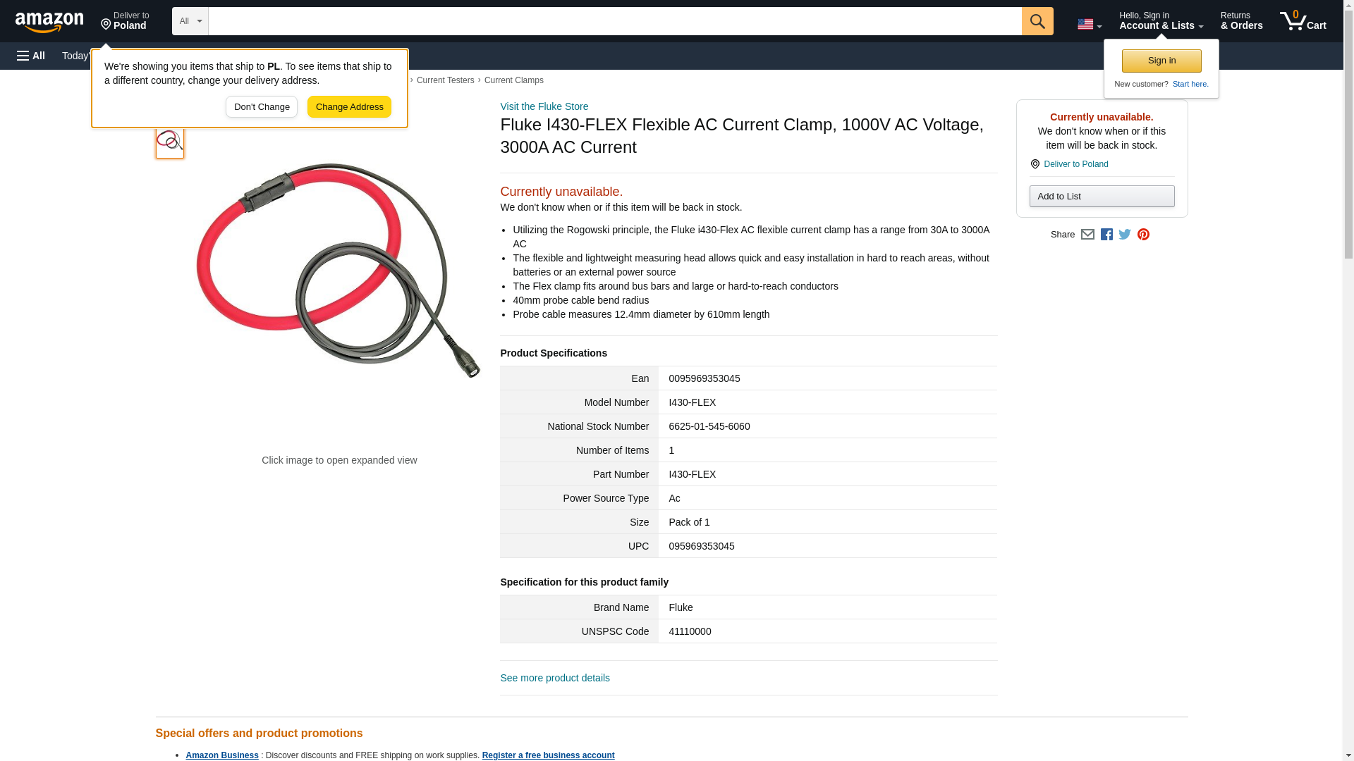 Fluke I430-FLEX Flexible AC Current Clamp, 1000V AC Voltage, 3000A AC Current