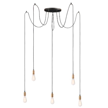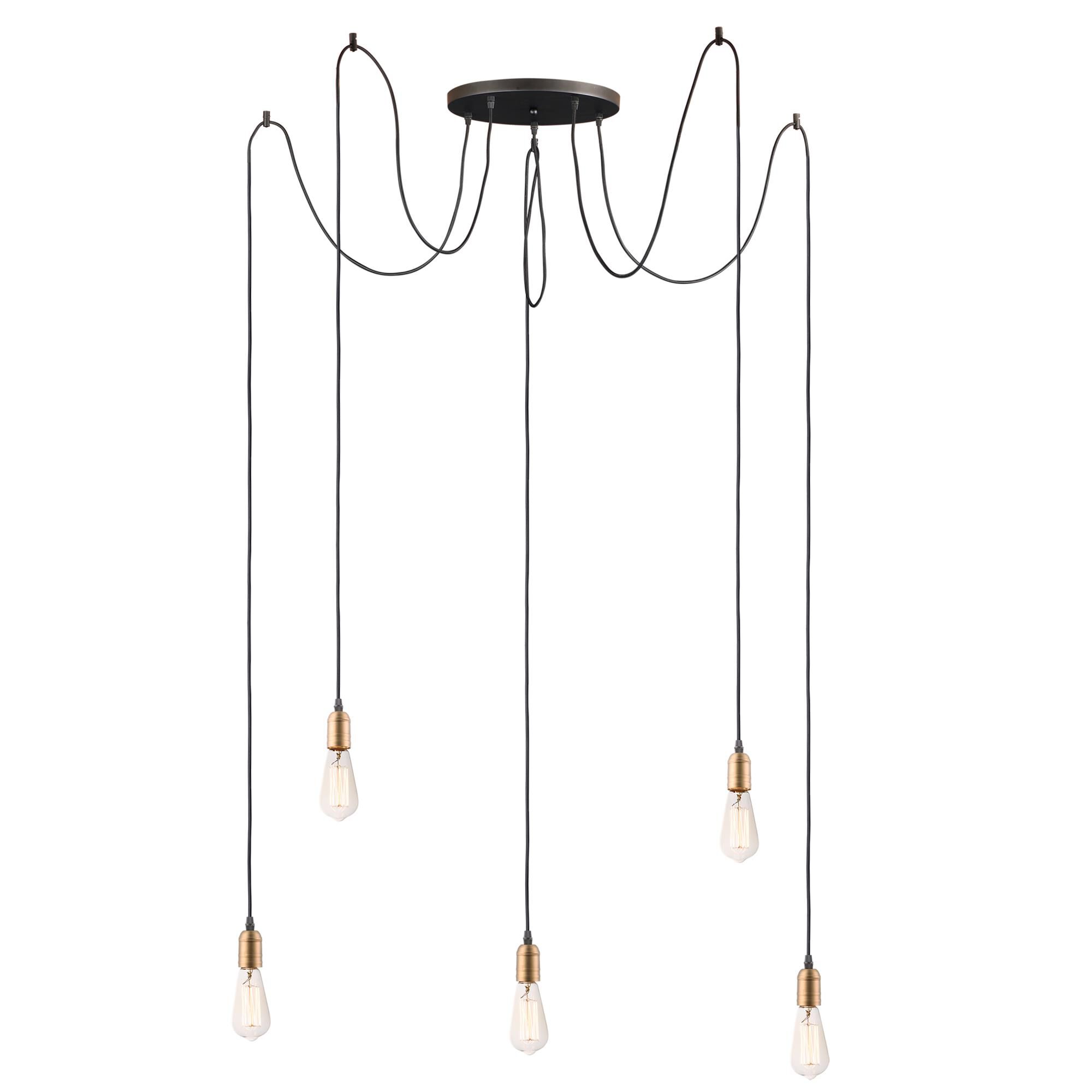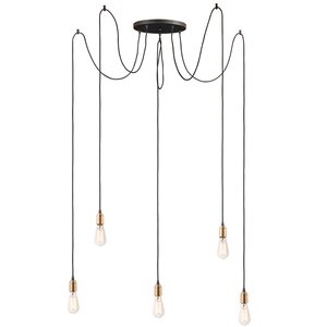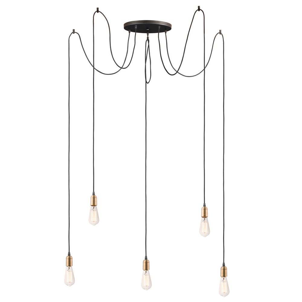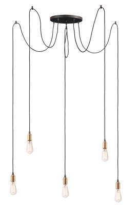 Maxim 12125BKAB Early Electric Pendant Ceiling Lighting with Fabric Cord, 5-Light 300 Total Watts, 3" H x 14" W, Black/Antique Brass