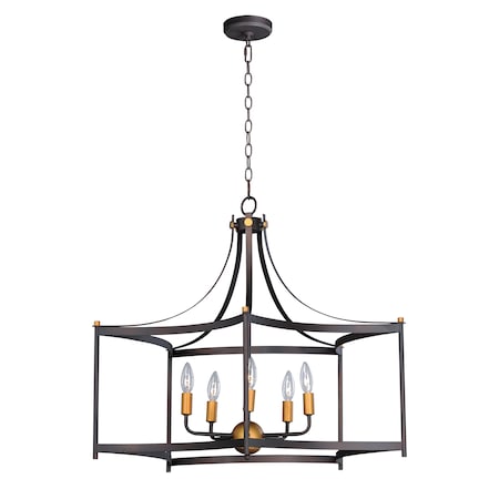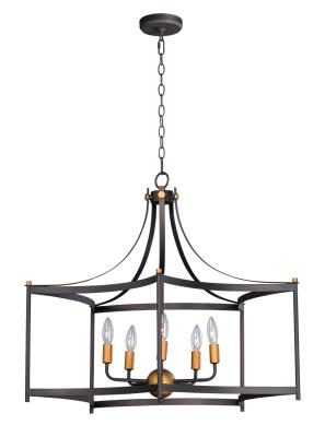 Maxim 13595OIAB Wellington Open Frame Candle Pendant Ceiling Light, 5-Light 300 Total Watts, 26"H x 30"W, Oil Rubbed Bronze/Antique Brass