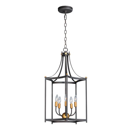 Maxim 13597OIAB Wellington Open Frame Candle Pendant Ceiling Light, 5-Light 300 Total Watts, 32"H x 18"W, Oil Rubbed Bronze/Antique Brass