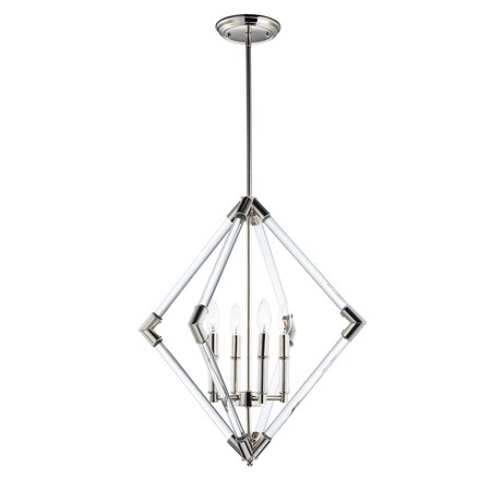 Maxim 16104CLPN Lucent Modern Clear Glass Rods Candle Pendant Ceiling Light, 4-Light 240 Total Watts, 24"H x 24"W, Polished Nickel