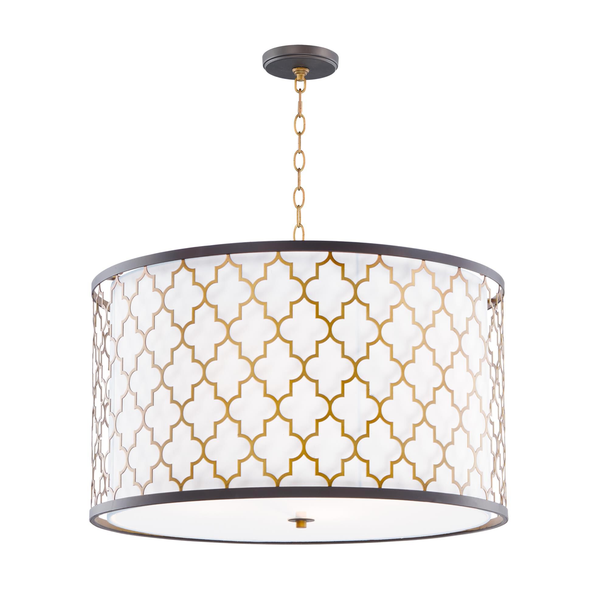 Maxim 20295WLOIAB Crest Modern White Linen Fabric Drum Pendant Ceiling Light, 4-Light 240 Total Watts, 17"H x 24"W, Oil Rubbed Bronze/Antique Brass