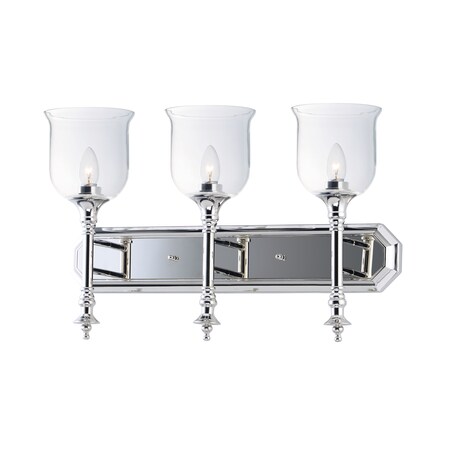 Maxim 20475CLPN Centennial Colonial Clear Glass Bath Vanity Wall Mount, 3-Light 180 Total Watts, 16"H x 24"W, Polished Nickel