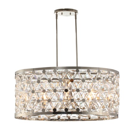 Maxim 39507BCPN Cassiopeia Modern Crystal Oval Pendant Ceiling Light, 8-Light 480 Total Watts, 15"H x 16"W x 33" L, Polished Nickel