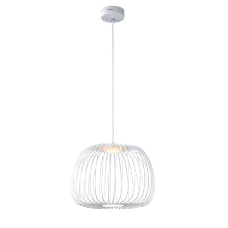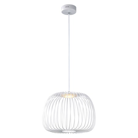 ET2 E20573-WT Cage White Metal Wire Apple Shape LED Pendant Ceiling Lighting, 1-Light 7 Watt, 13"H x 16"W, White