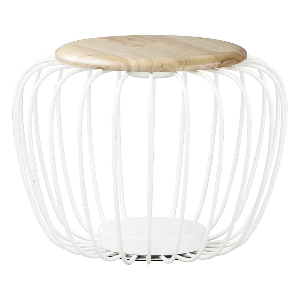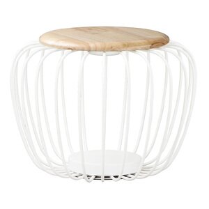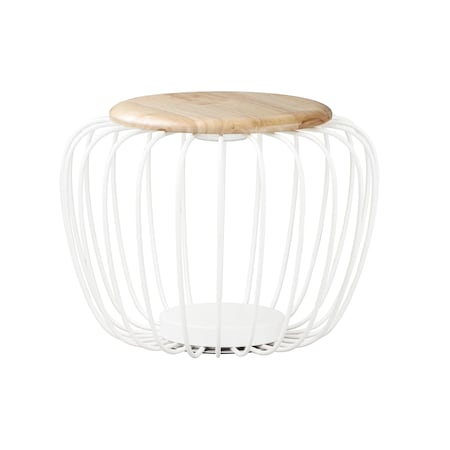 ET2 E20577-WTNW Cage White Metal Wire Wood Top Table Stool LED Floor Lamp, 1-Light 7 Watt, 15"H x 20"W, White / Navaho White