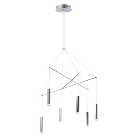 ET2 E22276-75PC Picolo Tall-scale Tubular LED Pendant Ceiling Lighting, 6-Light 12 Total Watts, 15"H x 25"W x 25"L, Polished Chrome
