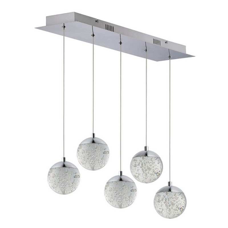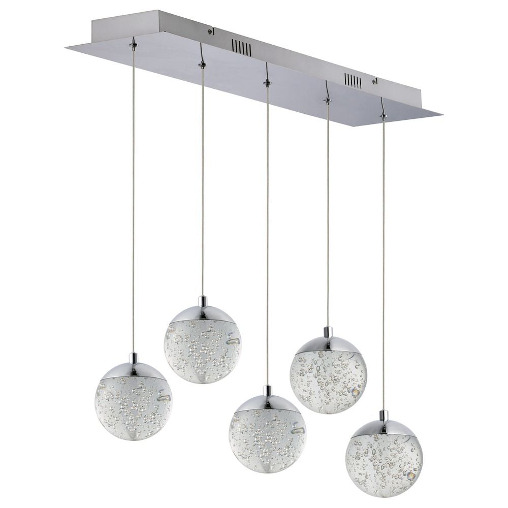 ET2 E24265-91PC Orb II Clear Bubble Glass Crystal Ball with Cap Linear LED Pendant Ceiling Lighting, 5-Light 25 Total Watts, 6" H x 7" W x 34" L, Polished Chrome