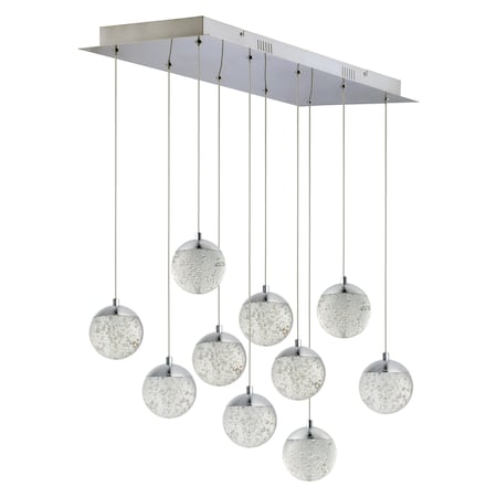 ET2 E24266-91PC Orb II Clear Bubble Glass Crystal Ball with Cap Linear LED Pendant Ceiling Lighting, 10-Light 50 Total Watts, 6"H x 11"W x 34"L, Polished Chrome