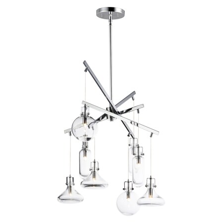 ET2 E24308-18PC Kem Thick Clear Glass Multi-Shape Pendant Ceiling Lighting, 8-Light Xenon 320 Total Watts, 26"H x 22"W, Polished Chrome