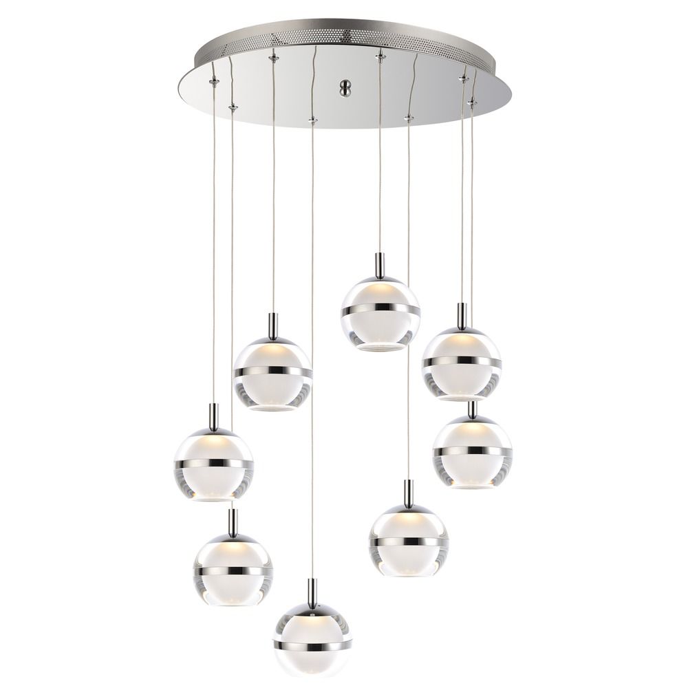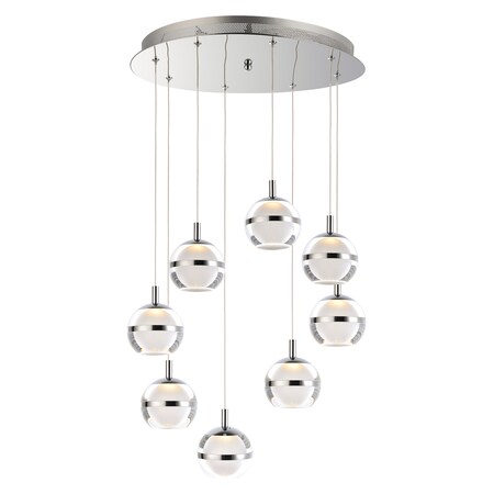 ET2 E24598-93PC Swank Floating Metal Band with Acrylic / Frosted Orb Round LED Pendant Ceiling Lighting, 8-Light 48 Watts, 6"H x 19"W, Polished Chrome