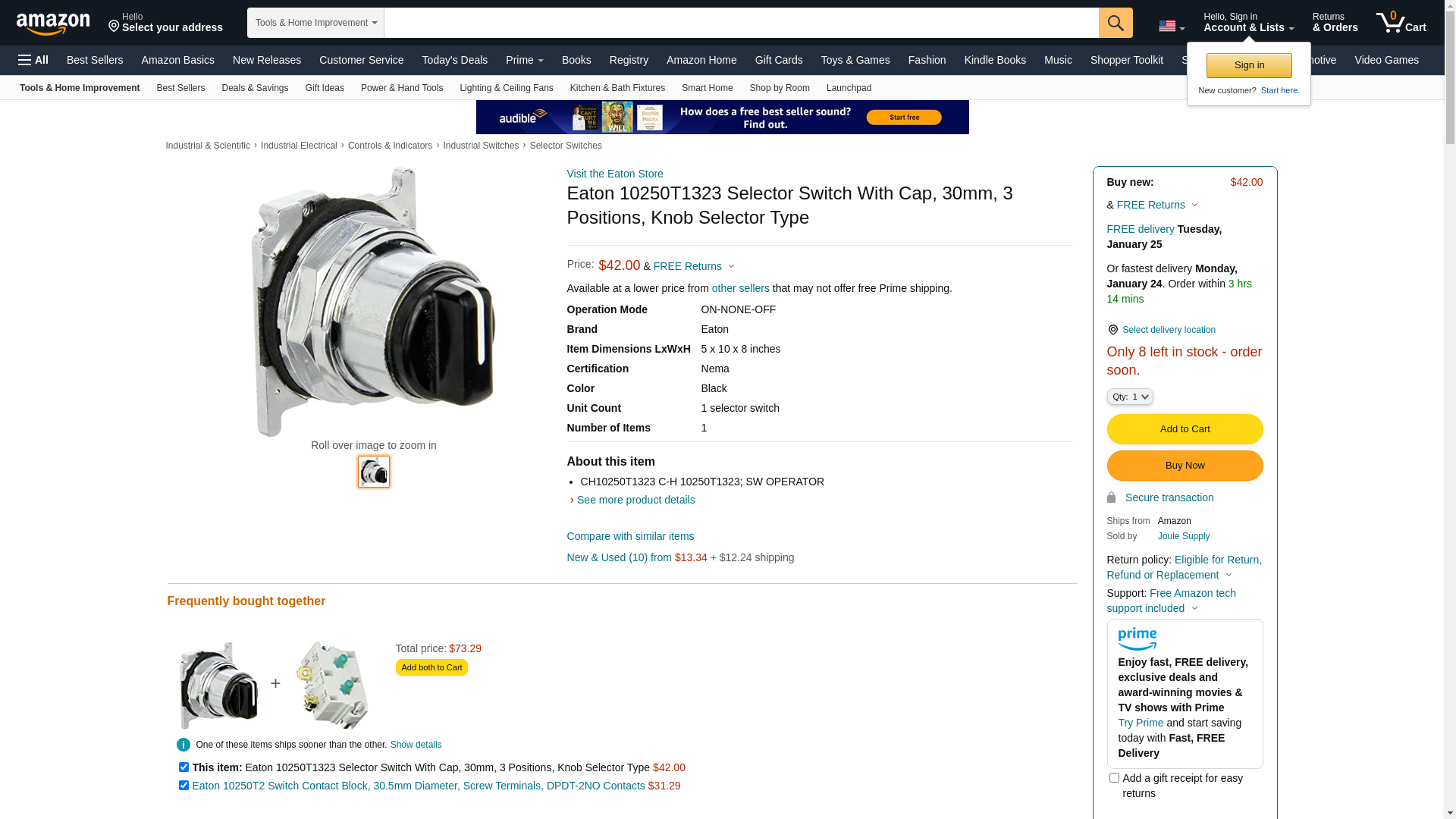 | Feature | Price For: Each For Use With: Eaton 10250T Series Selector Switches Mounting Hole Dia: 30.5mm Color: Black Contact Current Max: 6A Leaded Process Compatible: No No. of Switch Positions: 3 Peak Reflow Compatible (260 C): No RoHS Compliant: No |
