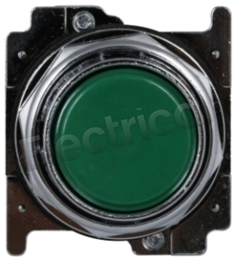 CUTLER HAMMER 10250T23G with Contact Block Round, Flush Mount, Corrosion Resistant, PUSHBUTTON Switch, OILTIGHT and Watertight, NONILLUMINATED, MOMENTARY (MO), 30-1/2MM Mount Hole, Green PUSHBUTTON