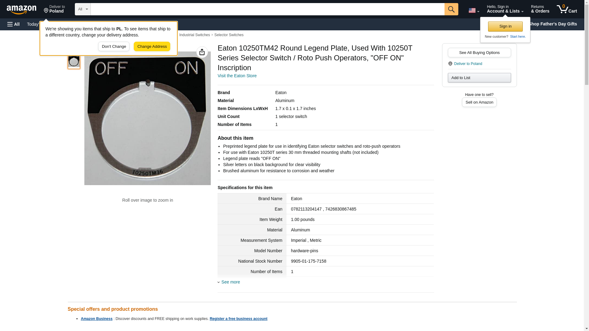 | Feature | Preprinted legend plate for use in identifying Eaton selector switches and roto-push operators |