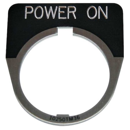 The EATON legend plate is a half round plate for 30.5mm push button operators and indicating lights.<br /><br /> Item: Legend Plate<br /> Shape: 1/2 Round<br /> Legend: Power On<br /> For Use With: 30.5mm Pushbutton Operators and Indicating Lights<br /> Legend/Background Color: Black<br /> Material: Aluminum<br /> Height: 1.75"<br /> Width: 1.75"<br /> Diameter: 30mm<br />