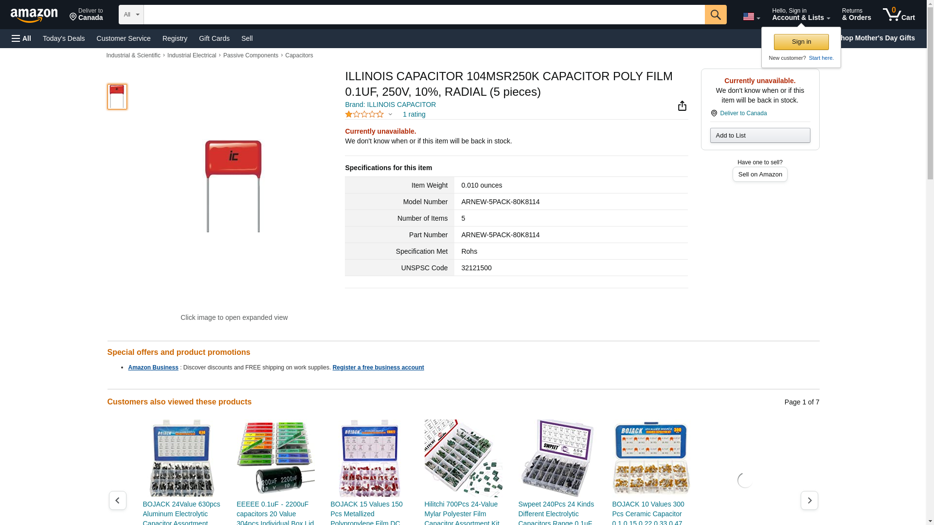 "Illinois Capacitor, Inc. 104MSR250K Capacitor; Polyester Metallized; Cap 0.1 uF; Tol 10%; Vol-Rtg 250 VDC; Radial"