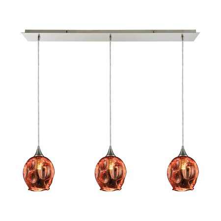 10502/3LP ELK Lighting Morph 3-Light Linear Mini Pendant Fixture In Satin Nickel With Copper-Plated Blown Glass