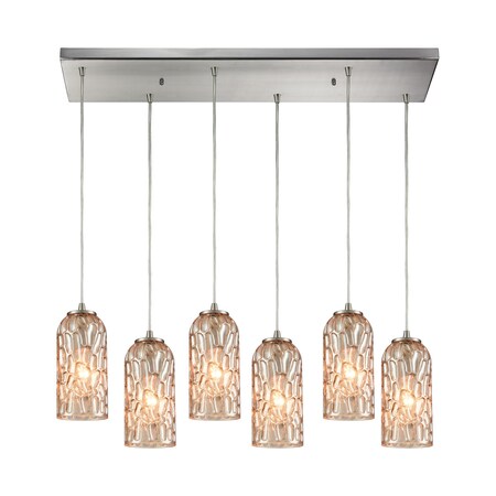 10610/6RC ELK Lighting Ansegar 6-Light Rectangular Pendant Fixture In Satin Nickel With Amber-Plated Textured Glass