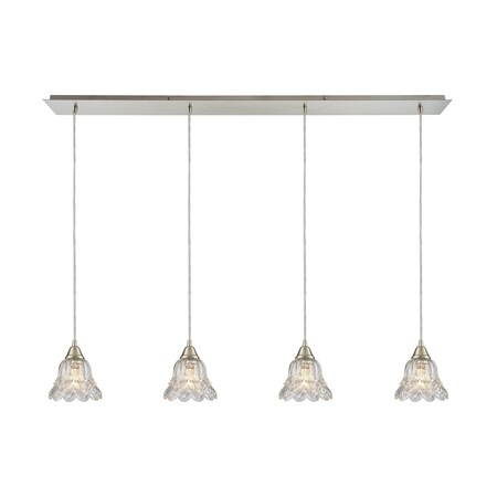 10680/4LP ELK Lighting Walton 4-Light Linear Pendant Fixture In Satin Nickel With Clear Pressed Glass