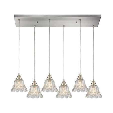 10680/6RC ELK Lighting Walton 6-Light Rectangular Pendant Fixture In Satin Nickel With Clear Pressed Glass