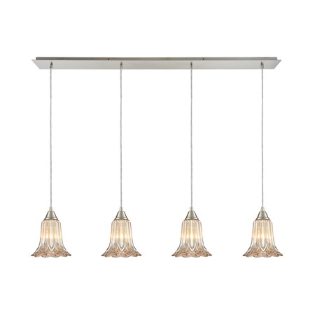 10695/4LP ELK Lighting Walton 4-Light Linear Pendant Fixture In Satin Nickel With Amber-Plated Pressed Glass
