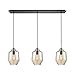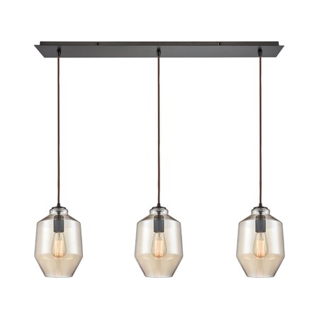 10910/3LP ELK Lighting Barrel 3-Light Linear Mini Pendant Fixture In Oil Rubbed Bronze With Champagne-Plated Blown Glass