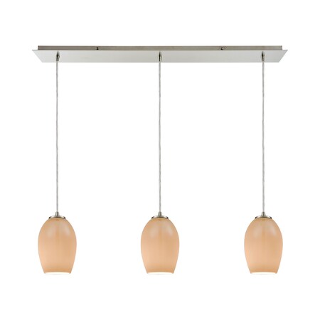 10930/3LP ELK Lighting Villiska 3-Light Linear Mini Pendant Fixture In Satin Nickel With Peach Blown Glass