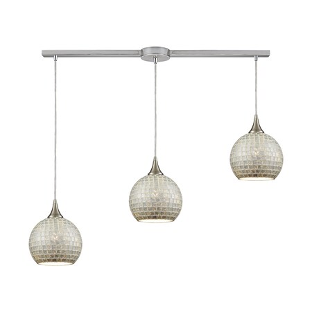 529-3L-SLV ELK Lighting Fusion 3-Light Linear Mini Pendant Fixture In Satin Nickel With Silver Mosaic Glass