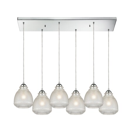 56590/6RC ELK Lighting Victoriana 6-Light Rectangular Pendant Fixture In Polished Chrome With Clear Crosshatched Glass
