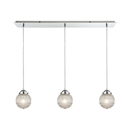 Elk Lighting Victoriana 3-light Linear Pendant Fixture In Polished Chrome With Clear Patterned Glass 56591/3LP