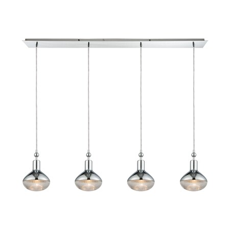56623/4LP ELK Lighting Ravette 4-Light Linear Pendant Fixture In Polished Chrome With Clear Ribbed Glass