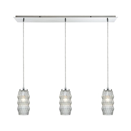 56650/3LP ELK Lighting Zigzag 3-Light Linear Mini Pendant Fixture In Polished Chrome With Clear Patterned Glass