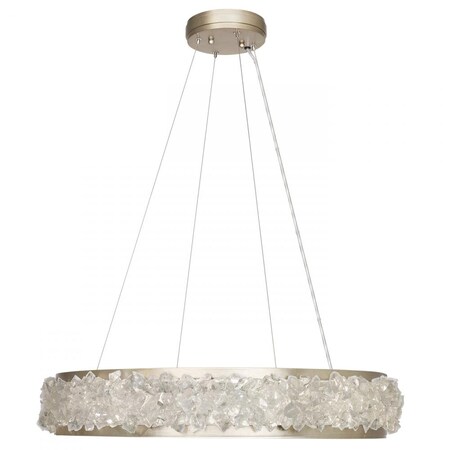 - Chandelier featuring hundreds of rough cut crystal glass gems that refract light in a manner reminiscent to the cirrus clouds ice crystals that form the lunar halo in the frozen night sky