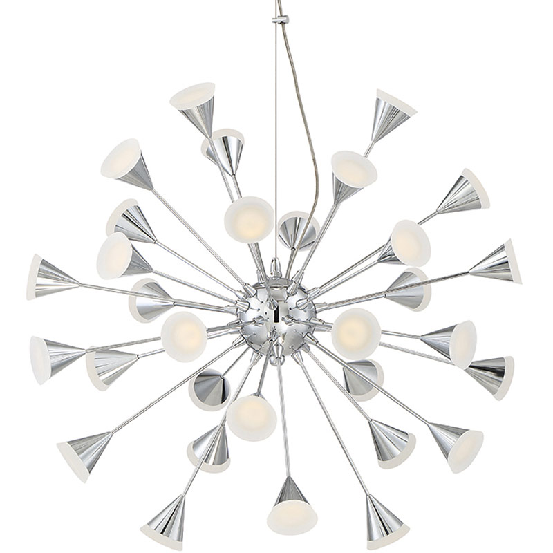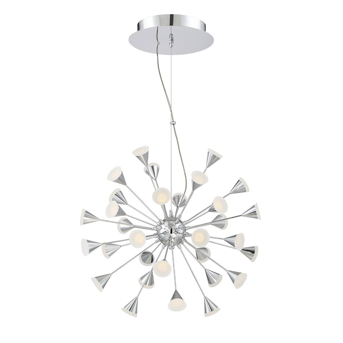 Eurofase 29027-019 Esplo Frosted Acrylic Dandelion LED Pendant Light, 32-Light 70 Total Watts, 25"H x 25"Dia, Chrome