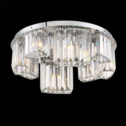 Eurofase 29081-011 Lumino Clear Glass Crystal Prisms Round Flush Mount Ceiling Light, 8-Light 320 Total Watts, 7" H x 19" Dia, Chrome